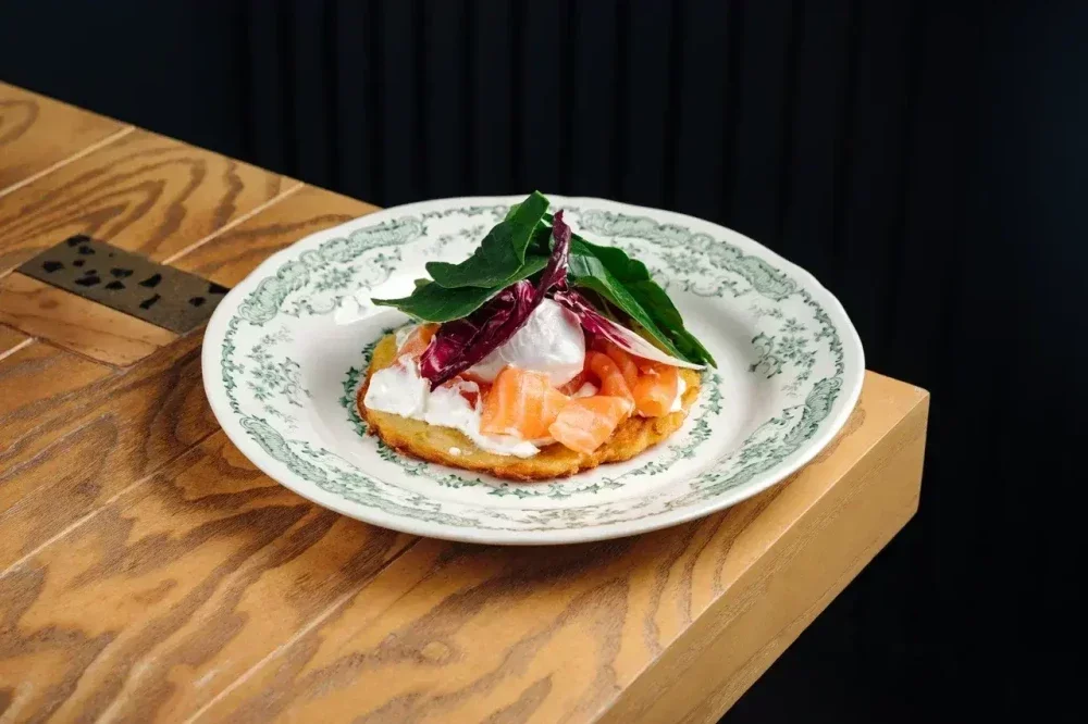 Драник с лососем и яйцом пашот