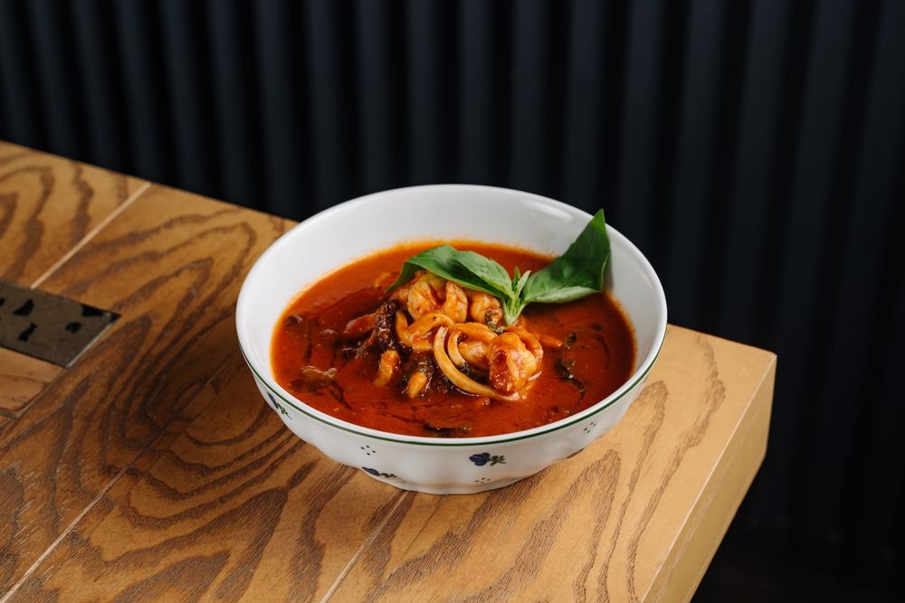 Томатный суп с морепродуктами