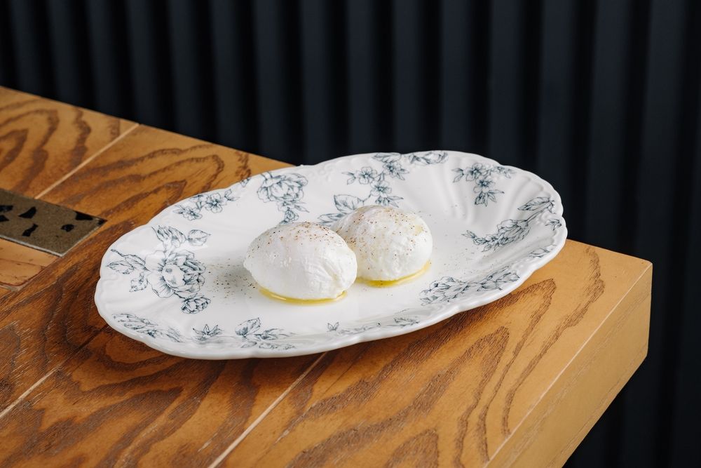 Бриошь с ветчиной, моцареллой, томатами и соусом вителло тоннато