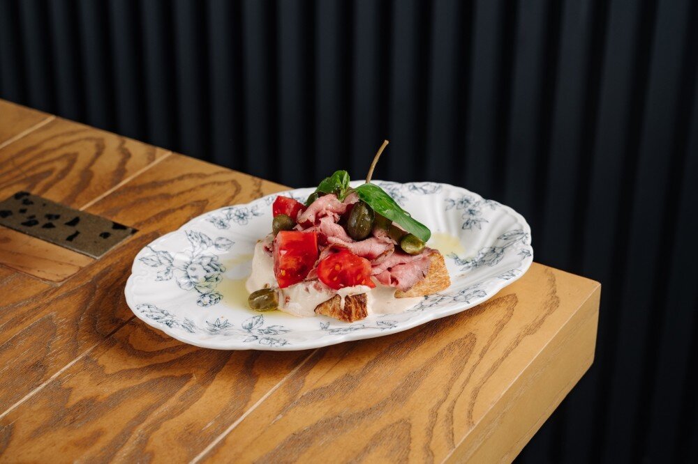 Тост "Вителло тоннато" с томатами