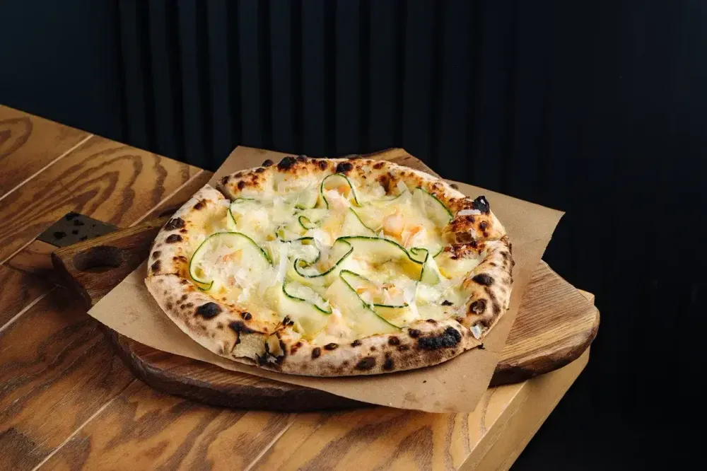 Пицца с креветками и цукини