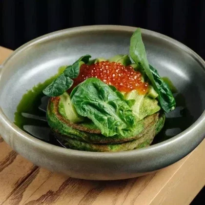 Отварная гречневая каша, сливочное масло, вода, яйцо пашот, авокадо, оливковое масло