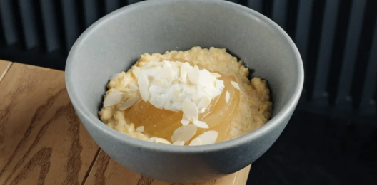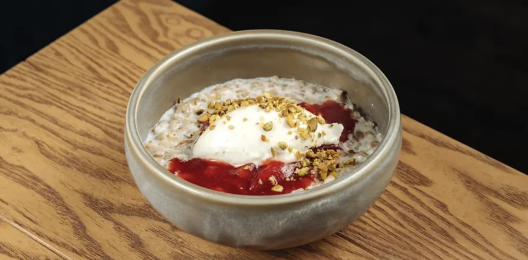 Цельнозерновая овсяная каша с клубничным вареньем и ганашем